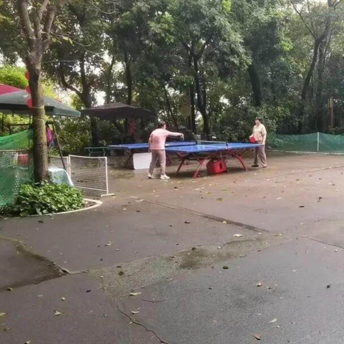 而事实上,这个高频率使用、常年日晒雨淋的球场,在改造前可有不少问题:地面沉降导致坑洼不平、地砖松动,打球得留神“脚下陷阱”;旧球台台面开裂、胶皮剥落,影响球路;更令人头疼的是没有遮阳避雨的地方,球友累了只能在路边、台阶上休息,日晒雨淋只能提前收工。