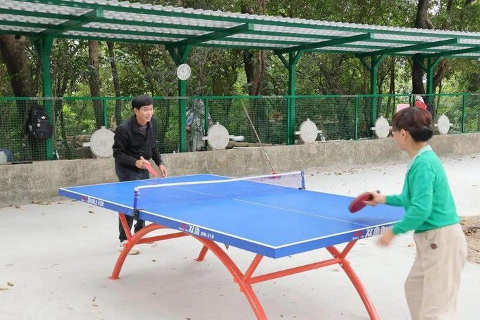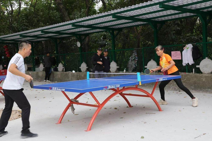 施工团队对地面进行全面平整处理,清除松动地砖、填补凹陷区域,告别了“坑坑洼洼”;球场新增6张专业室外乒乓球台,台面采用防紫外线、防开裂材质,光滑平整且弹性均匀,确保击球轨迹稳定;新建30米长透光遮雨棚,则为市民提供舒适的休息空间,风雨无阻、烈日不怕。
