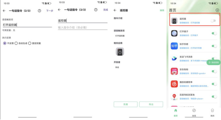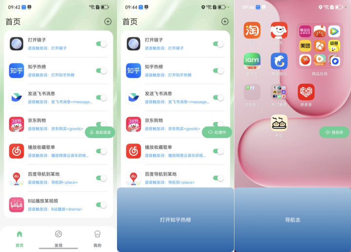 这款煎饺APP也是一款专注于AI语音快捷指令的安卓应用,它能通过一句话触发手机内的复杂跨应用操作。无论是开车时一句话同时发微信、开导航、放音乐,还是睡前听故事、关窗帘,都能轻松实现。