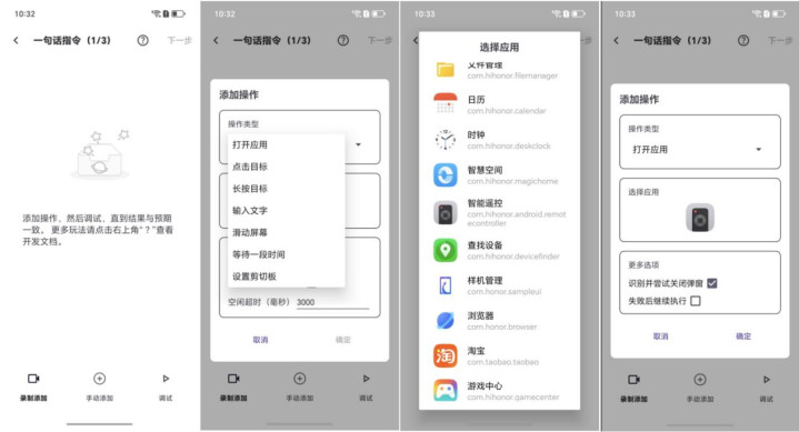 与固定指令的手机助手不同,煎饺APP允许用户自定义指令和操作流程。极客玩家可以创造独特的自动化场景,比如一键开启“王者模式”(自动关通知、开性能模式)等,解决每个人的独特痛点。
