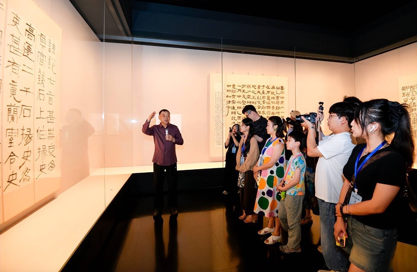 “现场仿佛一节生动的书法课,不仅看到了许多难得一见的美术精品,也让我对中原地区石刻书法遗存有了更加清晰的认识。” 第一次来郑州的@-只小Hola呀_林沐嘉说,虽然之前她在西安也参观过很多书法展,但此次“稽古开新”展览仍然让人眼前一亮,“作品风格很多元,从中能感受到作者丰富创作语言,不禁感叹中国书法、美术文化的博大精深,也感动于艺术家在艺术探索道路上的艰难跋涉。”